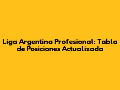 Liga Argentina Profesional: Tabla De Posiciones Actualizada