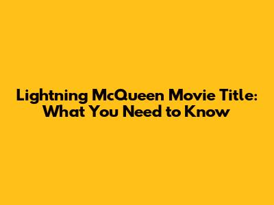 Lightning McQueen Movie Title: What You Need To Know