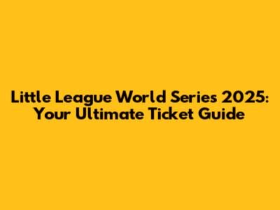 Little League World Series 2025: Get Your Tickets!