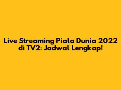Live Streaming Piala Dunia 2022 Di TV2: Jadwal Lengkap!