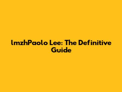 What Exactly is lmzhPaolo Lee?