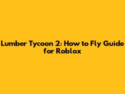 Lumber Tycoon 2: How To Fly Guide For Roblox