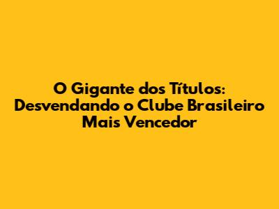 Chegou a hora de revelar o clube brasileiro com mais títulos no geral! Após uma análise detalhada e cuidadosa, podemos afirmar que o clube que lidera essa lista é o... (aguarde o suspense!)... o Palmeiras! Sim, meus amigos, com uma história rica e repleta de conquistas, o Palmeiras se destaca como o clube mais vitorioso do futebol brasileiro, somando títulos importantes em diversas competições.