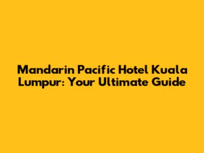 Mandarin Pacific Hotel Kuala Lumpur: Your Guide