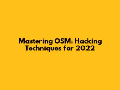 Mastering OSM: Hacking Techniques For 2022