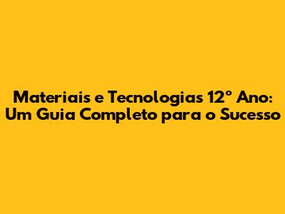 Materiais E Tecnologias 12º Ano: Domine A Matéria!