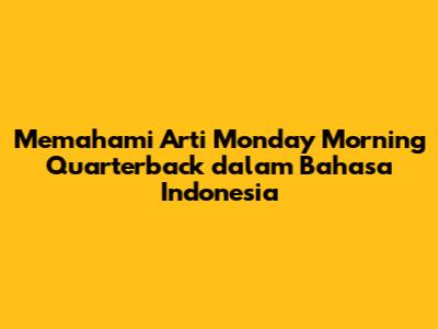 "Monday Morning Quarterback" adalah istilah yang berasal dari dunia olahraga, khususnya sepak bola Amerika (American football). Quarterback adalah posisi krusial dalam tim, yang bertugas memimpin serangan dan membuat keputusan taktis di lapangan. Nah, Monday Morning Quarterback secara harfiah berarti "quarterback pada hari Senin pagi". Tapi, jangan salah paham, ini bukan berarti quarterback yang benar-benar bermain pada hari Senin, ya.