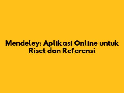 Mendeley: Aplikasi Online Untuk Riset Dan Referensi