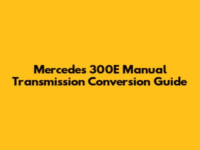 Mercedes 300E: Manual Transmission Conversion Guide