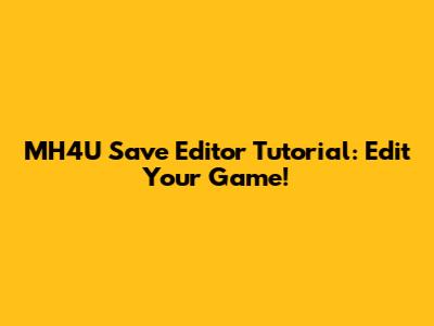 Using an MH4U save editor is a powerful way to enhance your Monster Hunter 4 Ultimate experience, but it requires patience, careful research, and a healthy respect for your save data. Follow these guidelines, stay cautious, and you'll be able to customize your hunt like never before. Happy hunting, and happy (safe) editing!