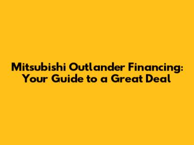 Mitsubishi Outlander Financing: Your Guide To A Great Deal