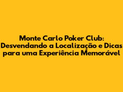 Olá, pessoal! Se você é fã de poker e está planejando uma visita ao famoso Monte Carlo Poker Club, provavelmente está se perguntando: onde fica o Monte Carlo Poker Club? Não se preocupe, porque hoje vamos desvendar todos os detalhes sobre a localização, como chegar e dicas essenciais para aproveitar ao máximo sua experiência. Prepare-se para mergulhar no mundo emocionante do poker em um dos clubes mais renomados do mundo!