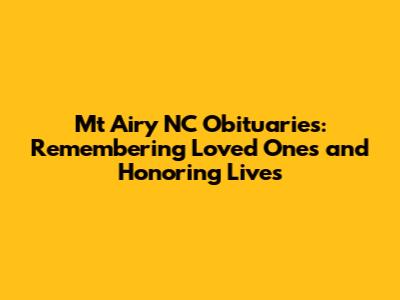 Mt Airy NC Obituaries: Recent Deaths & Local News