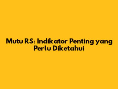 Mutu RS: Indikator Penting Yang Perlu Diketahui