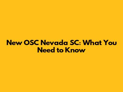 New OSC Nevada SC: What You Need To Know