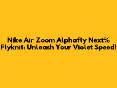 The Nike Air Zoom Alphafly Next% Flyknit in Violet is more than just a running shoe; it's a statement of intent. It's a declaration that you're serious about your performance, that you're not afraid to stand out, and that you're ready to push your limits. With its innovative technology, comfortable fit, and eye-catching colorway, this shoe is a game-changer for runners of all levels. So, lace up a pair and experience the violet velocity for yourself. Your personal bests await!