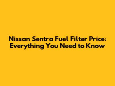 Nissan Sentra Fuel Filter Price: What You Need To Know