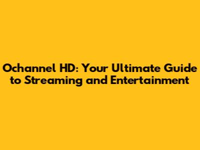 Ochannel HD: Your Ultimate Guide To Streaming And Entertainment