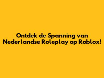 Ontdek De Spanning Van Nederlandse Roleplay Op Roblox!