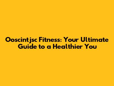 Ooscintjsc Fitness: Your Guide To A Healthier You