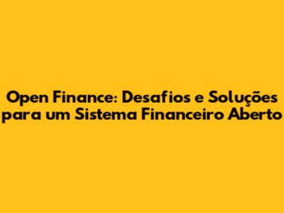 Open Finance: Desafios E Soluções Para Um Sistema Financeiro Aberto