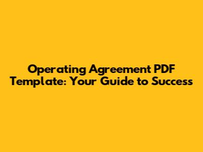 Hey everyone, let's dive into the operating agreement PDF template world! If you're starting a business, especially a limited liability company (LLC), you've probably heard this term thrown around. But what exactly is it, why is it so important, and how can a handy template help you out? This article will break down everything you need to know about operating agreements, how to use an operating agreement PDF template to your advantage, and why getting it right from the start is super crucial for your business's future. Think of it as your business's rulebook – it outlines how you'll run things, how profits and losses are divided, and what happens if things get tricky. Getting this right early on can save you a ton of headaches later. Let's get started, shall we?
