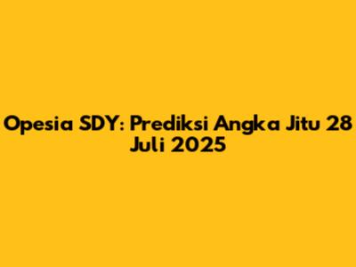 Opesia SDY: Prediksi Angka Jitu 28 Juli 2025