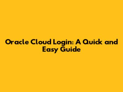 Oracle Cloud Login: A Quick And Easy Guide