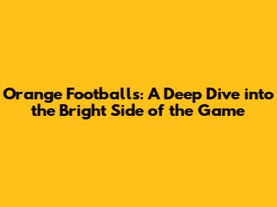 Orange Footballs: A Deep Dive Into The Bright Side Of The Game