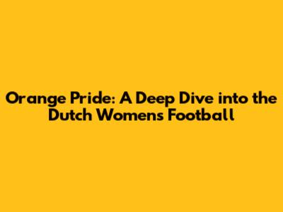 Orange Pride: A Deep Dive Into The Dutch Women's Football