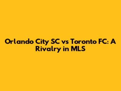 Orlando City SC Vs Toronto FC: A Rivalry In MLS
