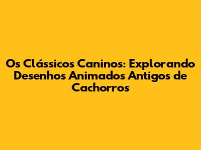 Os Clássicos Caninos: Explorando Desenhos Animados Antigos De Cachorros