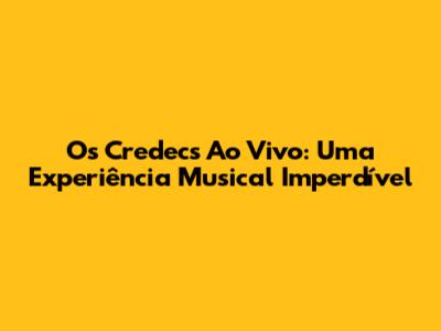 Os Credecs Ao Vivo: Assista Online Agora Mesmo!