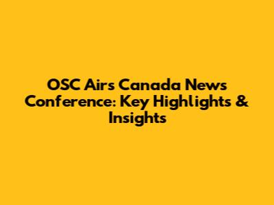 OSC Airs Canada News Conference: Key Highlights & Insights