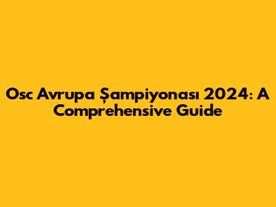 Osc Avrupa Şampiyonası 2024: A Comprehensive Guide