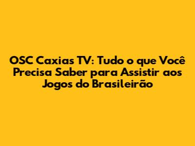 Assistir aos jogos do Brasileirão e torcer pelo OSC Caxias nunca foi tão fácil. Com as diversas opções de TV aberta, TV fechada, streaming e a potencial OSC Caxias TV, você pode acompanhar o seu time em qualquer lugar e a qualquer hora. Planeje-se, escolha as plataformas que melhor se encaixam em suas necessidades e prepare-se para vibrar com cada lance, cada gol e cada vitória do seu time do coração. O Brasileirão está chegando, e a emoção está garantida! Prepare a pipoca, convide os amigos e prepare-se para mais uma temporada de muita festa e futebol! E lembre-se, se a OSC Caxias TV existir, essa será uma ferramenta fundamental para que você, torcedor, esteja ainda mais próximo do seu time.