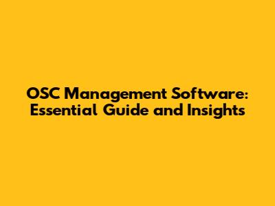 OSC Management Software: Essential Guide And Insights