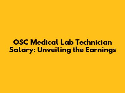 OSC Medical Lab Technician Salary: What You Need To Know