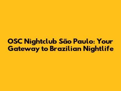 OSC Nightclub: Your Ultimate São Paulo Nightlife Guide
