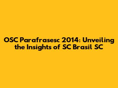 OSC Parafrasesc 2014: A Deep Dive Into SC Brasil SC