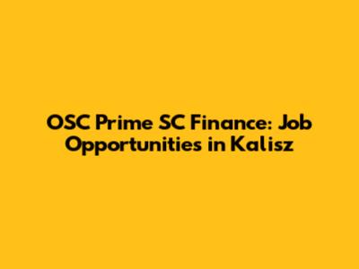 OSC Prime SC Finance: Job Opportunities In Kalisz