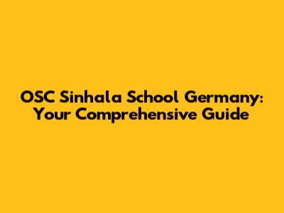 OSC Sinhala School Germany: Your Guide