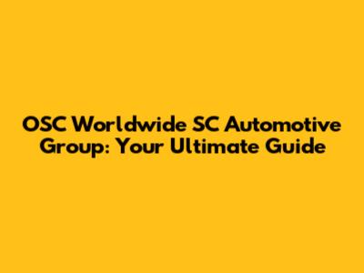 OSC Worldwide SC Automotive Group: Everything You Need To Know
