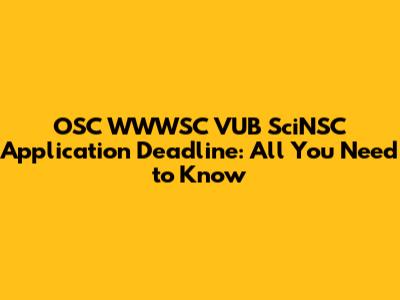 • A: The official application deadline is typically listed on the OSC WWWSC VUB SciNSC website. Check the admissions or application section for the most up-to-date information.