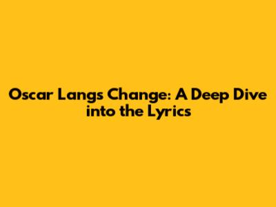 Oscar Lang's Change: A Deep Dive Into The Lyrics