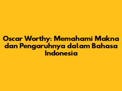 Oscar Worthy: Artinya, Sejarah, Dan Dampaknya