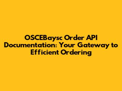 OSCEBaysc Order API: Your Guide To Seamless Integration