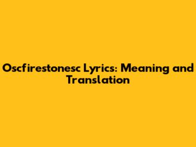 Oscfirestonesc Lyrics: Meaning And Translation