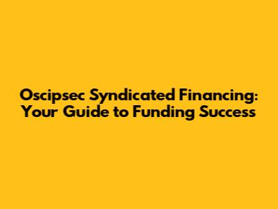 Oscipsec Syndicated Financing: Your Guide To Funding Success