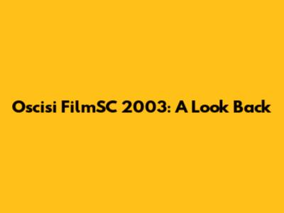 Oscisi FilmSC 2003: A Look Back
